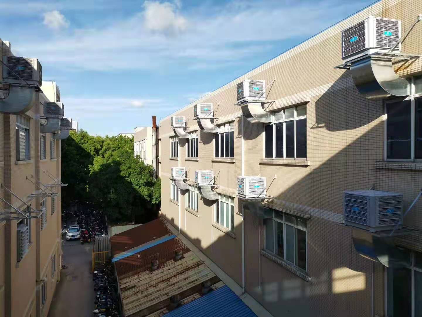 1、車間使用環保空調,在提供降溫的同時,還能通風,換氣,保持室內空氣的清新度;